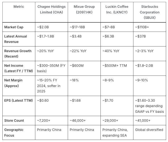 Fundamentals: Chagee vs Mixue vs Luckin Coffee vs Starbucks