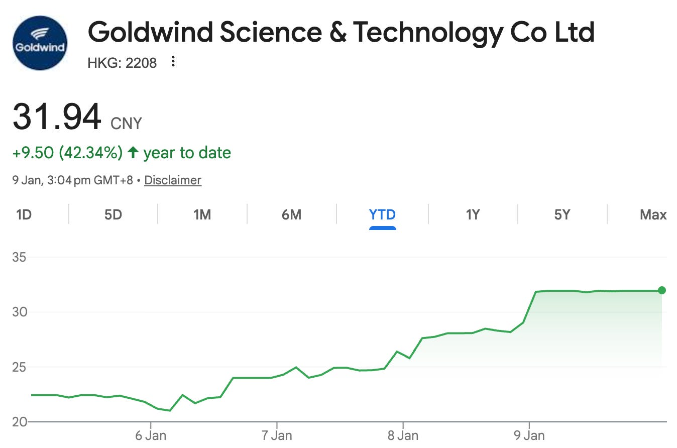 Seventy-five percent of that is targeting the Global South—Asia, the Middle East, Africa, and Latin America. China’s largest wind turbine maker, Goldwind (SEHK:2208), has surged 42% since the start of 2026.