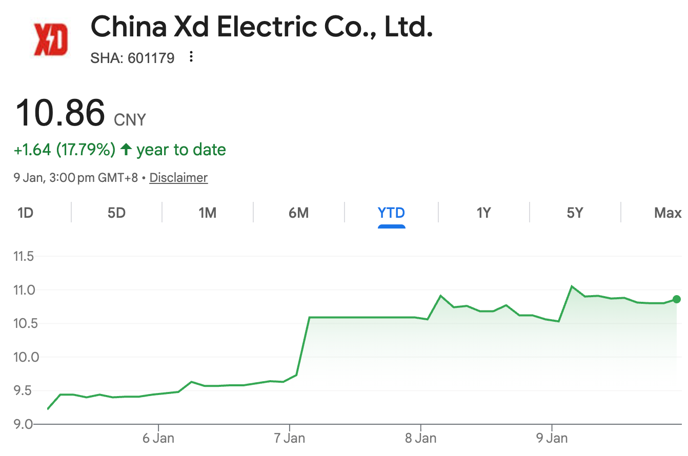 China Electricity Equipment Supplier Gains More Than 10% In First Week of 2026